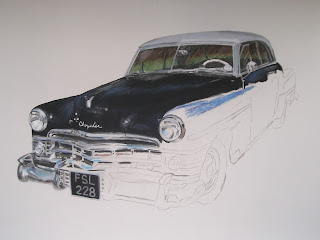 I've made some progress on Betty today. I've had to 'make up' the reflections to a degree as the owner didn't want the background showing through the windows as on the photo. I've got to the stage with her now where I can really see her taking shape. Initially there was very little done due to the detail. There's still alot of bumper and grill chrome to do which will slow me down but I want to get a bit more of her bonnet and wing done first to reduce the risk of smudging as I work.